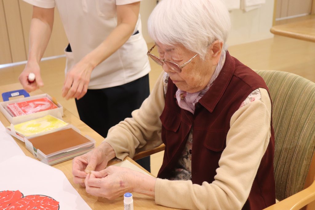 今回は”季節の花”をテーマに、貼り絵のレクリエーションをおこないました🌸
