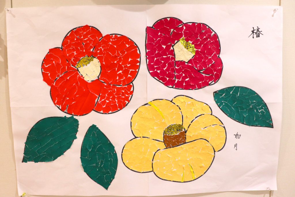 冬を彩る椿の貼り絵🌸